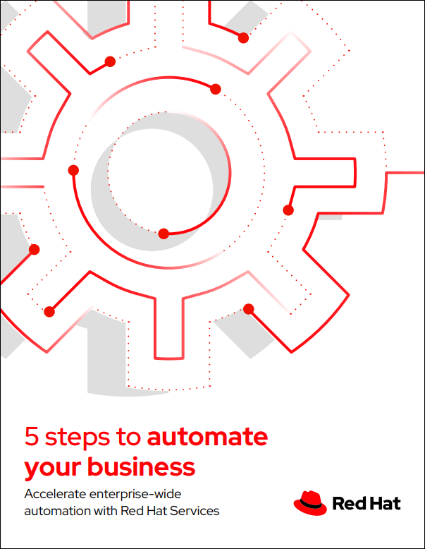 ebookIT 5 steps to automate your business 5 steps to automate your business This e-book explores how Red Hat Services can help you adopt enterprise-ready automation to unify teams, standardize processes, and transform your IT.
