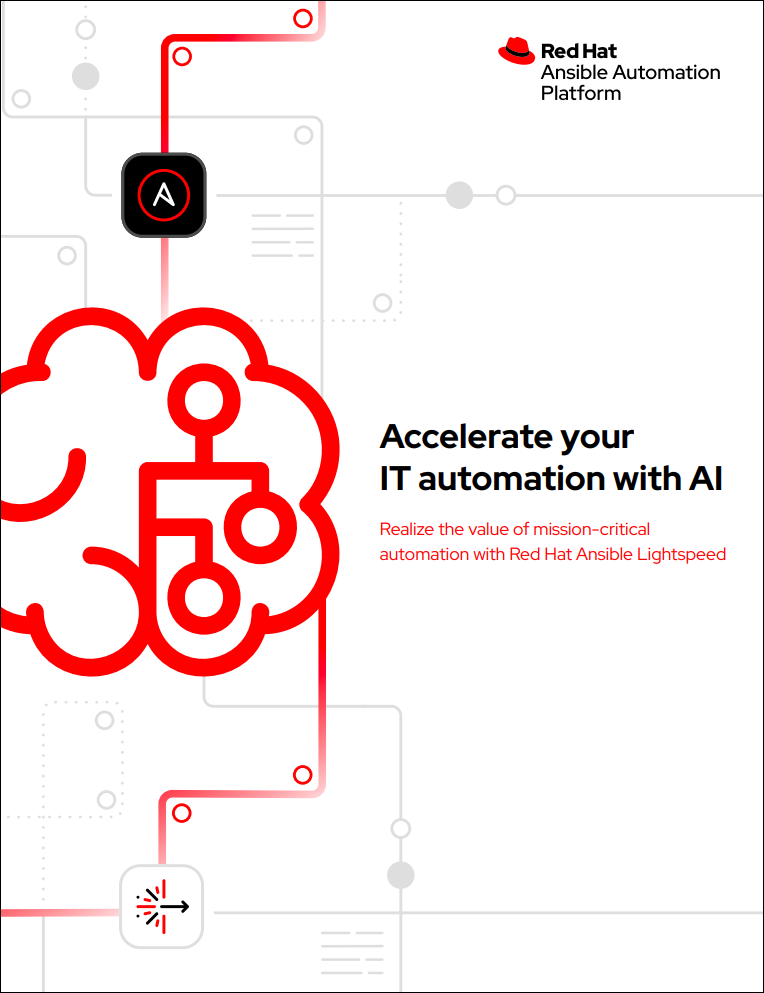 ebookIT Accelerate your IT automation with AI Accelerate your IT automation with AI Discover how Red Hat Ansible Lightspeed uses generative AI to help you realize the value of mission-critical automation.
