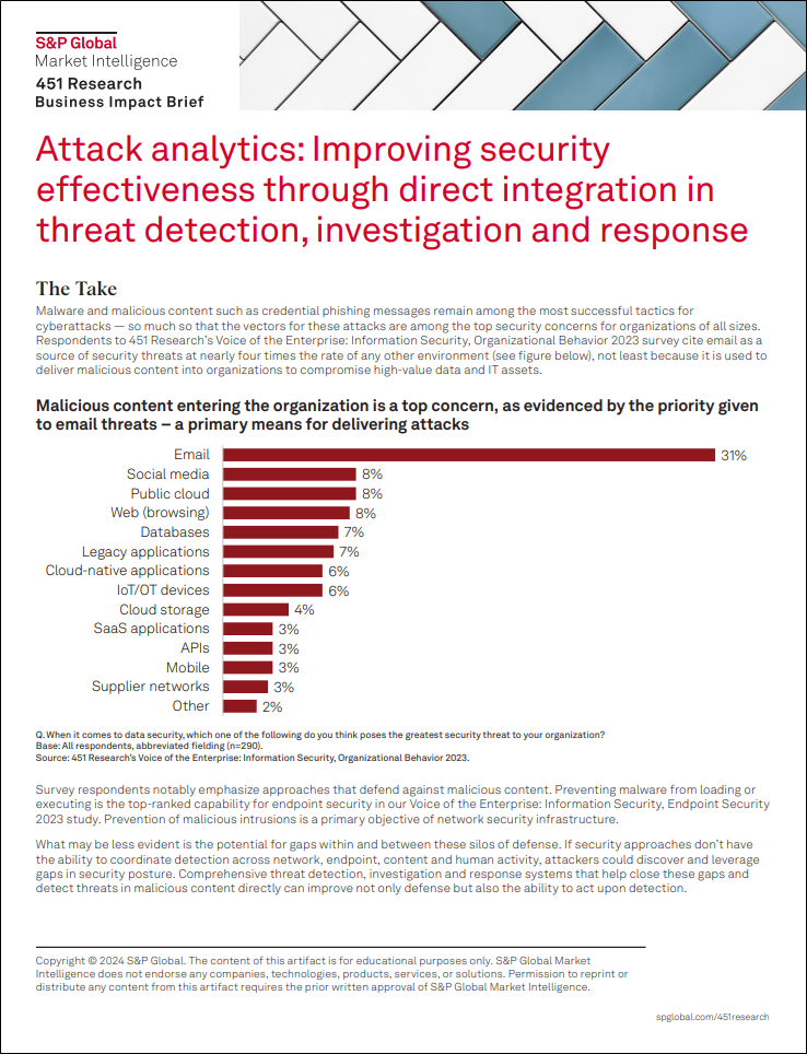 Download this complimentary copy of 451 Research’s Business Impact Brief, Attack analytics: Improving security effectiveness through direct integration in threat detection, investigation and response, to learn:
