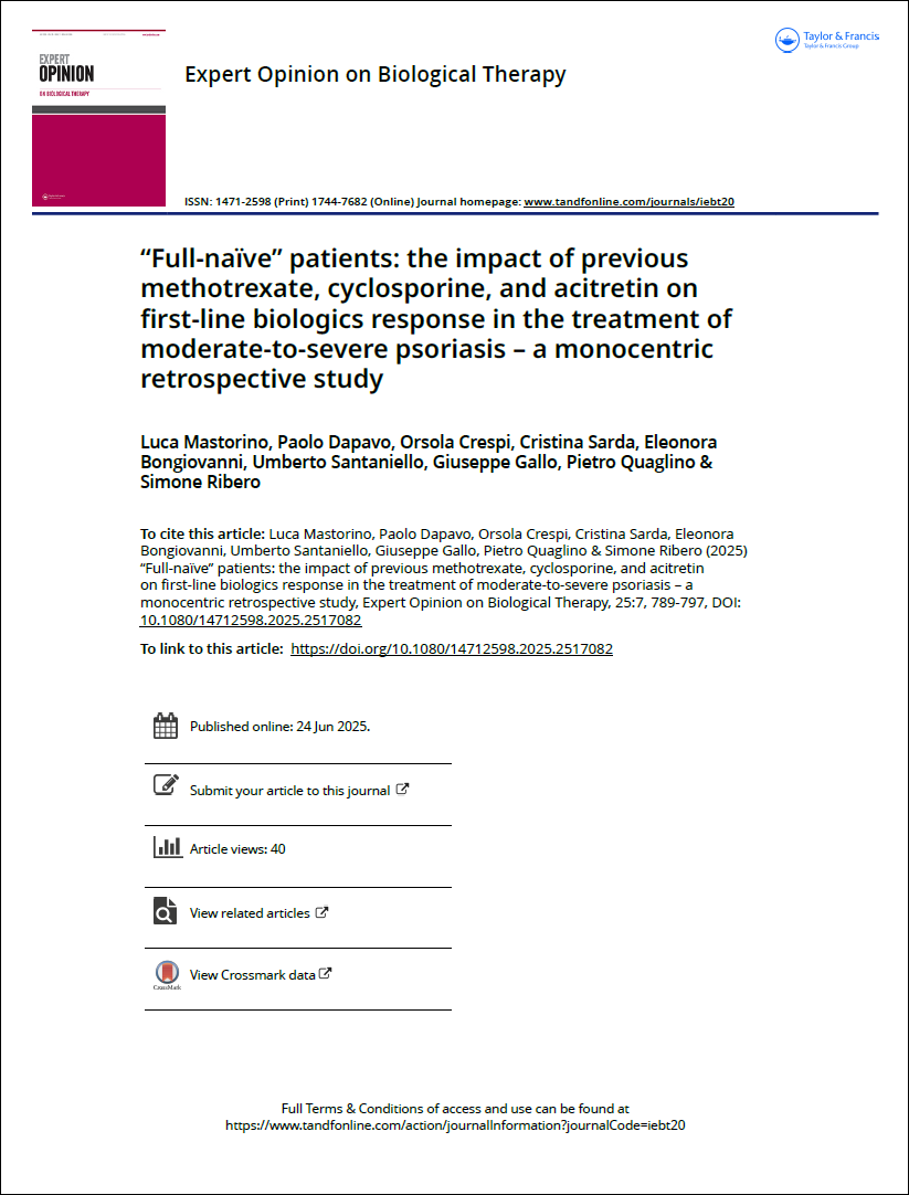 “Full-naïve” patients: the impact of previous methotrexate, cyclosporine, and acitretin on first-line biologics response in the treatment of moderate-to-severe psoriasis – a monocentric retrospective study.