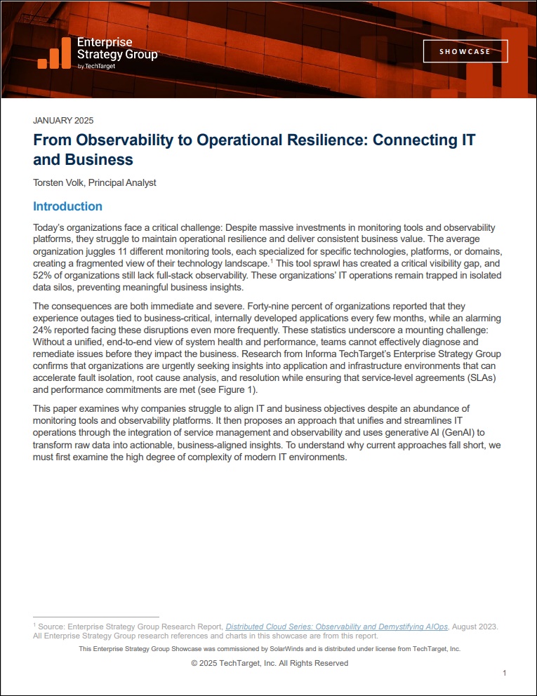 Today’s organizations face a critical challenge: Despite massive investments in monitoring tools and observability platforms, they struggle to maintain operational resilience and deliver consistent business value. The average organization juggles 11 different monitoring tools, each specialized for specific technologies, platforms, or domains, creating a fragmented view of their technology landscape. This tool sprawl has created a critical visibility gap, and 52% of organizations still lack full-stack observability. These organizations’ IT operations remain trapped in isolated data silos, preventing meaningful business insights.
