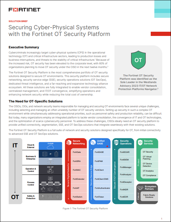 Download this solution brief to discover how the Fortinet OT Security Platform can protect your critical infrastructure, streamline operations, and strengthen your OT cybersecurity posture.