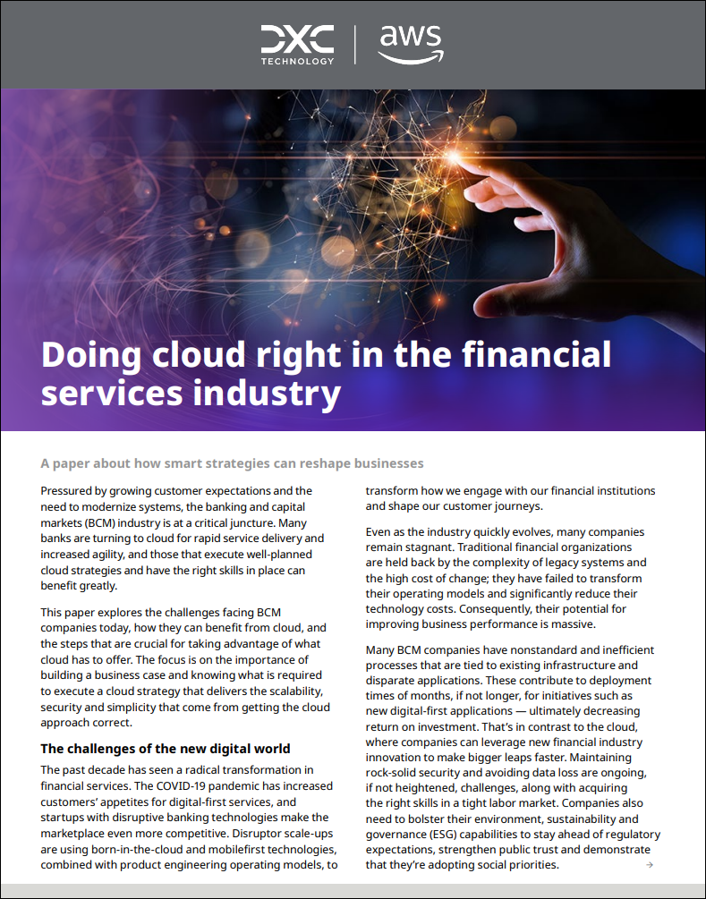 Financial services organizations face mounting pressure to modernize systems and deliver faster, more agile services. Cloud adoption is key—but success depends on having the right strategy, skills, and partners in place. With thoughtful execution, banks can unlock speed, scalability, and long-term value.