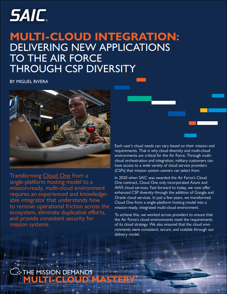 Miguel Rivera explores how SAIC has overcome these multi-cloud integration challenges, reduced the technical lift for military teams, and accelerated mission readiness for the Air Force.