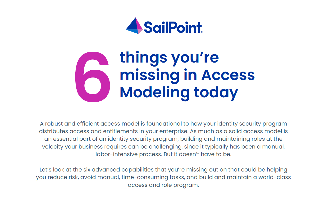 Building and maintaining access roles doesn’t have to be manual, slow, or error-prone. With SailPoint’s AI-driven access modeling, you can streamline role creation, improve accuracy, and cut governance risk.