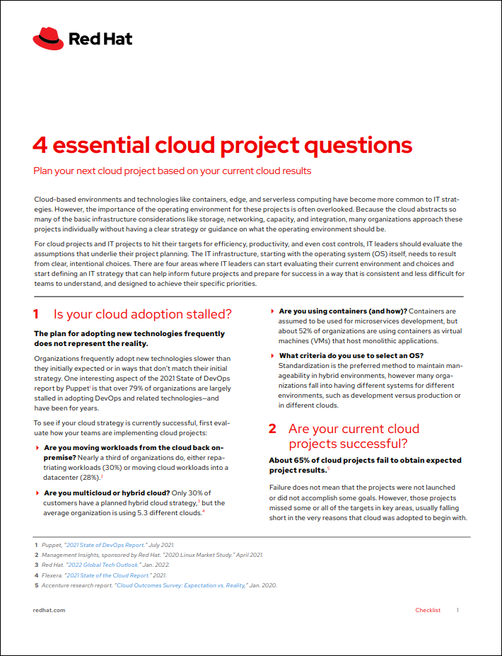 For cloud projects and IT projects to hit their targets for efficiency, productivity, and even cost controls, IT leaders should evaluate the assumptions that underlie their project planning. The IT infrastructure, starting with the operating system (OS) itself, needs to result from clear, intentional choices. There are four areas where IT leaders can start evaluating their current environment and choices and start defining an IT strategy that can help inform future projects and prepare for success in a way that is consistent and less difficult for teams to understand, and designed to achieve their specific priorities.
