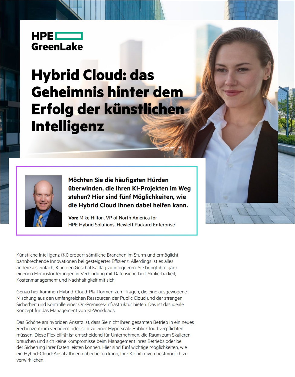 Künstliche Intelligenz (KI) revolutioniert Branchen, indem sie Innovationen und Effizienz vorantreibt. Die Integration von KI in den täglichen Geschäftsbetrieb bringt jedoch Herausforderungen in puncto Datensicherheit, Skalierbarkeit, Kostenmanagement und Nachhaltigkeit mit sich. Hybrid Cloud-Plattformen bieten hierfür eine Lösung, indem sie die umfangreichen Ressourcen der Public Cloud mit der Sicherheit und Kontrolle der On-Premises-Infrastruktur kombinieren.