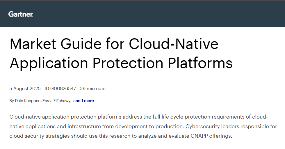 Gartner, Market Guide for Cloud-Native Application Protection Platforms, Dale Koeppen, Esraa ElTahawy, 5 August 2025