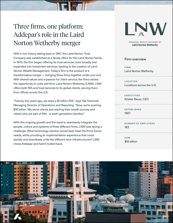 Laird Norton Wetherby merged three firms, creating a $16B powerhouse with complex operational needs. See how they chose a single tech platform to unify systems, streamline alternatives management, and enhance client service.