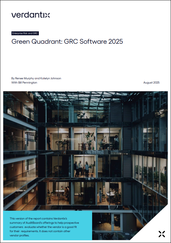 To stay ahead of a rapidly shifting business environment, new regulations, and emerging risks, organisations are increasing their investment in dedicated platforms built for the task. And to help you wade through the offerings, we’re sharing a complimentary copy of Verdantix’s latest Green Quadrant report on GRC software.